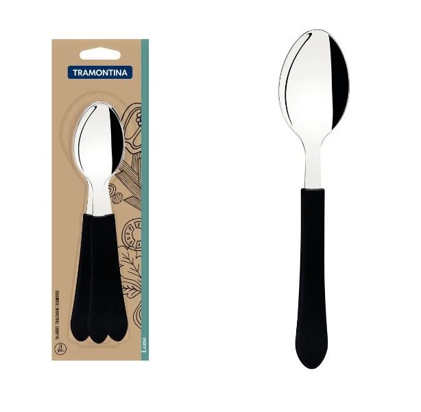 JOGO COLHER MESA 3 PEÇAS INOX LEME CABO PRETO TRAMONTINA