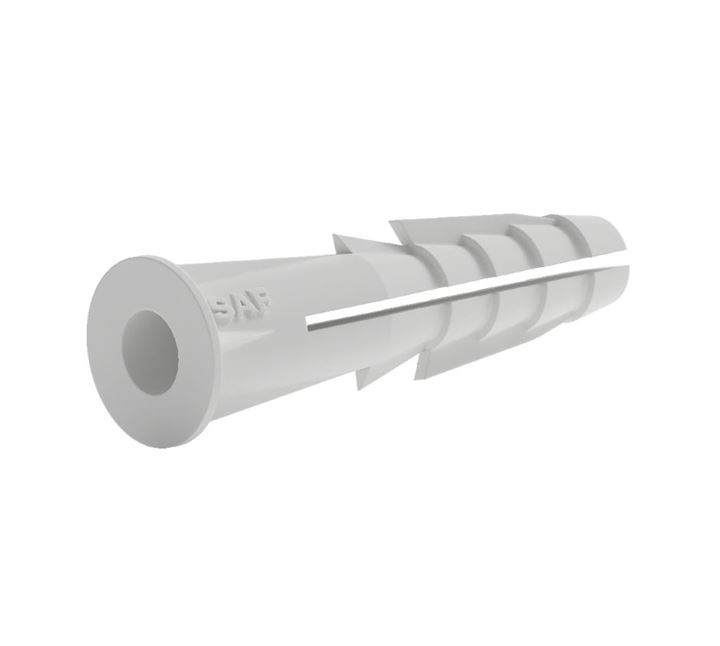 BUCHA UBS/BBASES SÓLIDASA ULTRA FIXAÇÃO PARA TODAS AS BASES SÓLIDASBORDA QUE IMPEDE QUE A BUCHA ENTRE NA PAREDEREFORÇOS ALONGADOS QUE IMPEDEM QUE A BUCHA GIRE NO INTERIOR DA PAREDE AO DAR TORQUE NO PARAFUSO4 ALETAS RÍGIDAS QUE A