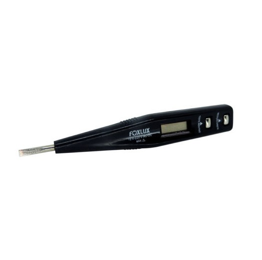 CHAVE TESTE DIGITAL FOXLUXMODELO: DIGITALMEDIÇÕES E AFERIÇÕES DE TENSÃO ENTRE 12V ATÉ 220VDISPLAY EM CRISTAL LÍQUIDOCABO INJETADO EM PVC PRETOHASTE EM AÇO CARBONOGARANTEM MAIOR CONFIABILIDADE NAS MEDIÇÕES REALIZADAS
