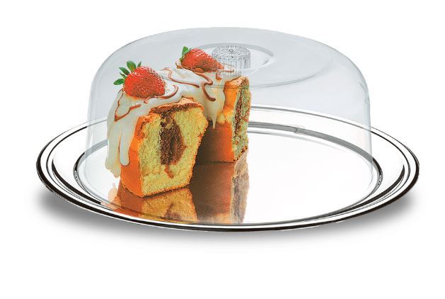 CONJUNTO PARA BOLO VAI A MESA COM PRATO AÇO INOX 32 CM DE DIÂMETRO E CUPULA TRANSPARENTE PETÚNIA BRINOX INOXCARACTERÍSTICAS DO PRODUTO: PRATO DE INOX COM ACABAMENTO BRILHOSO E CÚPULA EM POLIESTIRENOINFORMAÇÕES DO PRODUTO: DIMENSÕES PRA