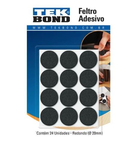 FELTRO ADESIVO REDONDO 20MM PRETO COM 24 TEKBOND