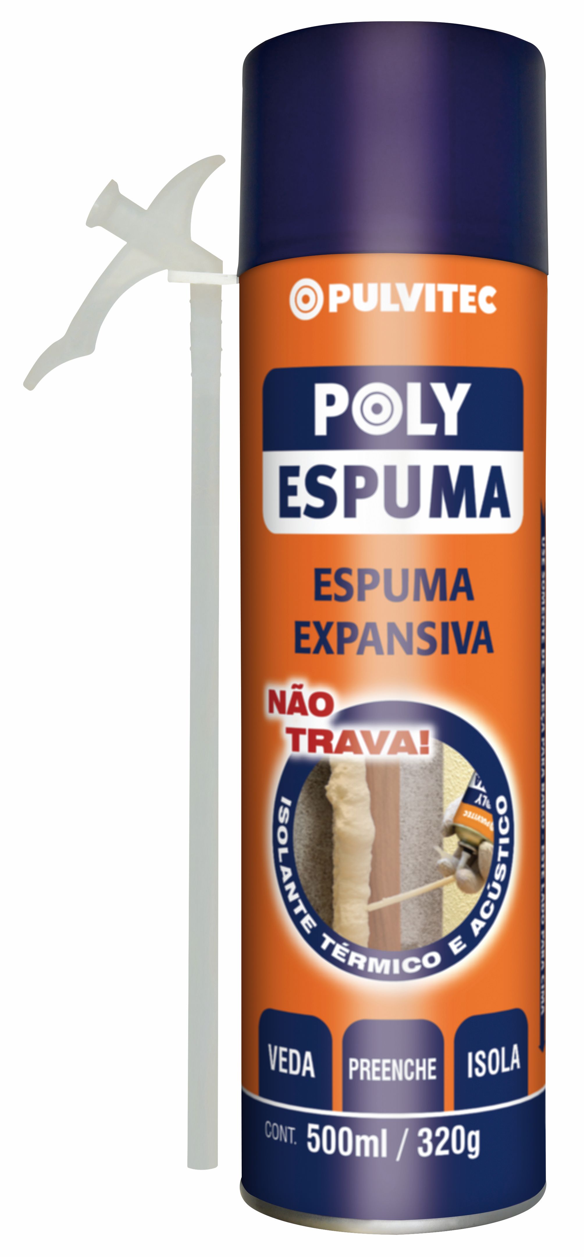 POLY ESPUMA EXPANSIVAPOLY ESPUMA EXPANSIVA FOI DESENVOLVIDA PARA A COLOCAÇÃO OU FIXAÇÃO DE JANELAS E PORTAS. RECOMENDADA TAMBÉM PARA ASSENTAMENTO DE BANHEIRAS, ISOLAMENTO TÉRMICO, FIXAÇÃO E PROTEÇÃO DE DUTOS, ISOLAMENTO DE TUBOS DE ÁGUA, VED